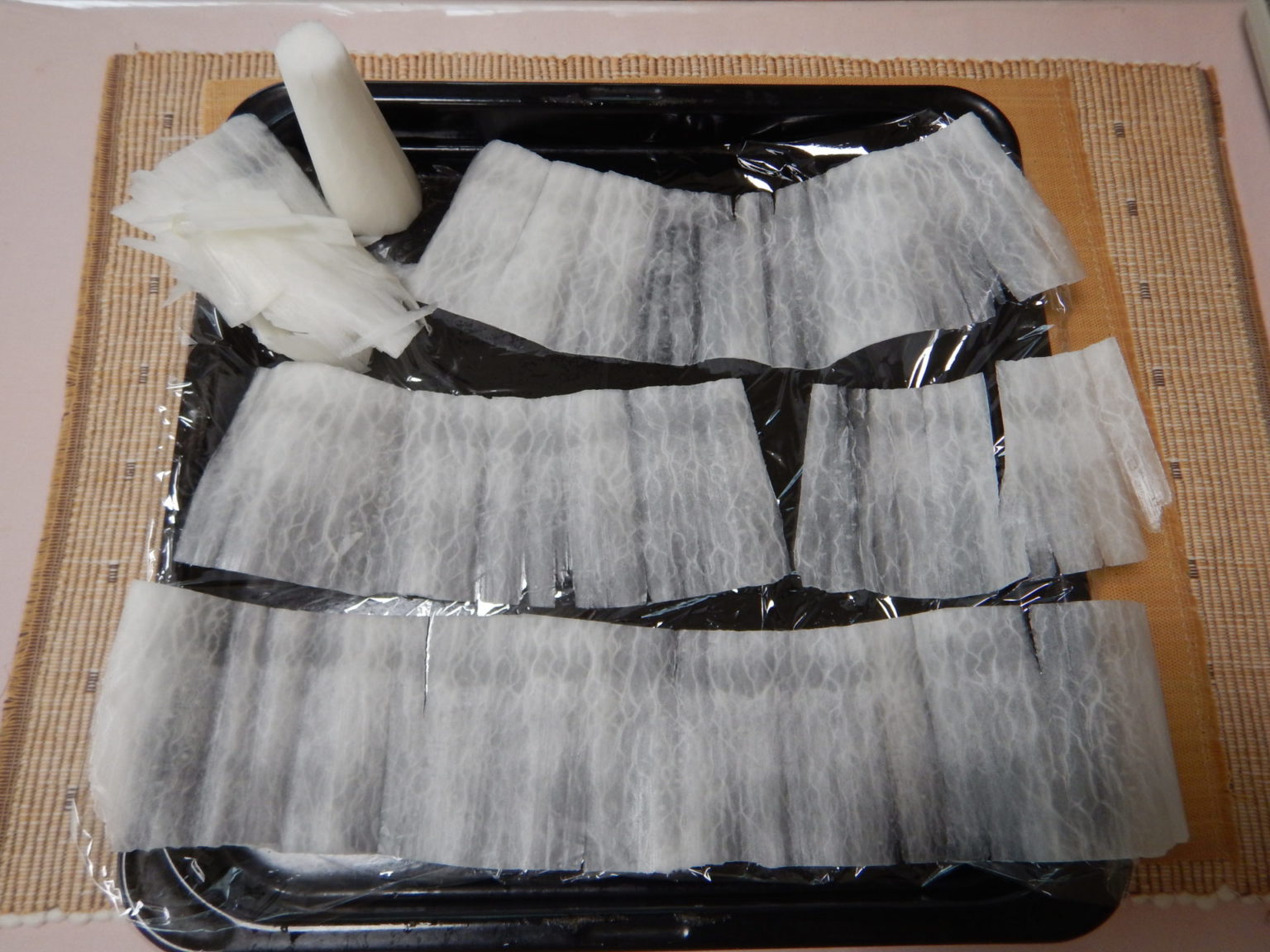 桂むき練習の記録(3)少し形になってきた…? 寿司学校 Twitter Facebook はてブ Pocket LINE コピー 2022.04.182016.11.24 桂むきの練習、3回目… 割と、形になってきたのではないでしょうか!切り込みは入っているし、均等な厚さになりませんが… 分厚いと、ガタガタしてしまうし、段差ができてしまうと、分厚くしないとつながらないし… 難しいです (>_<)