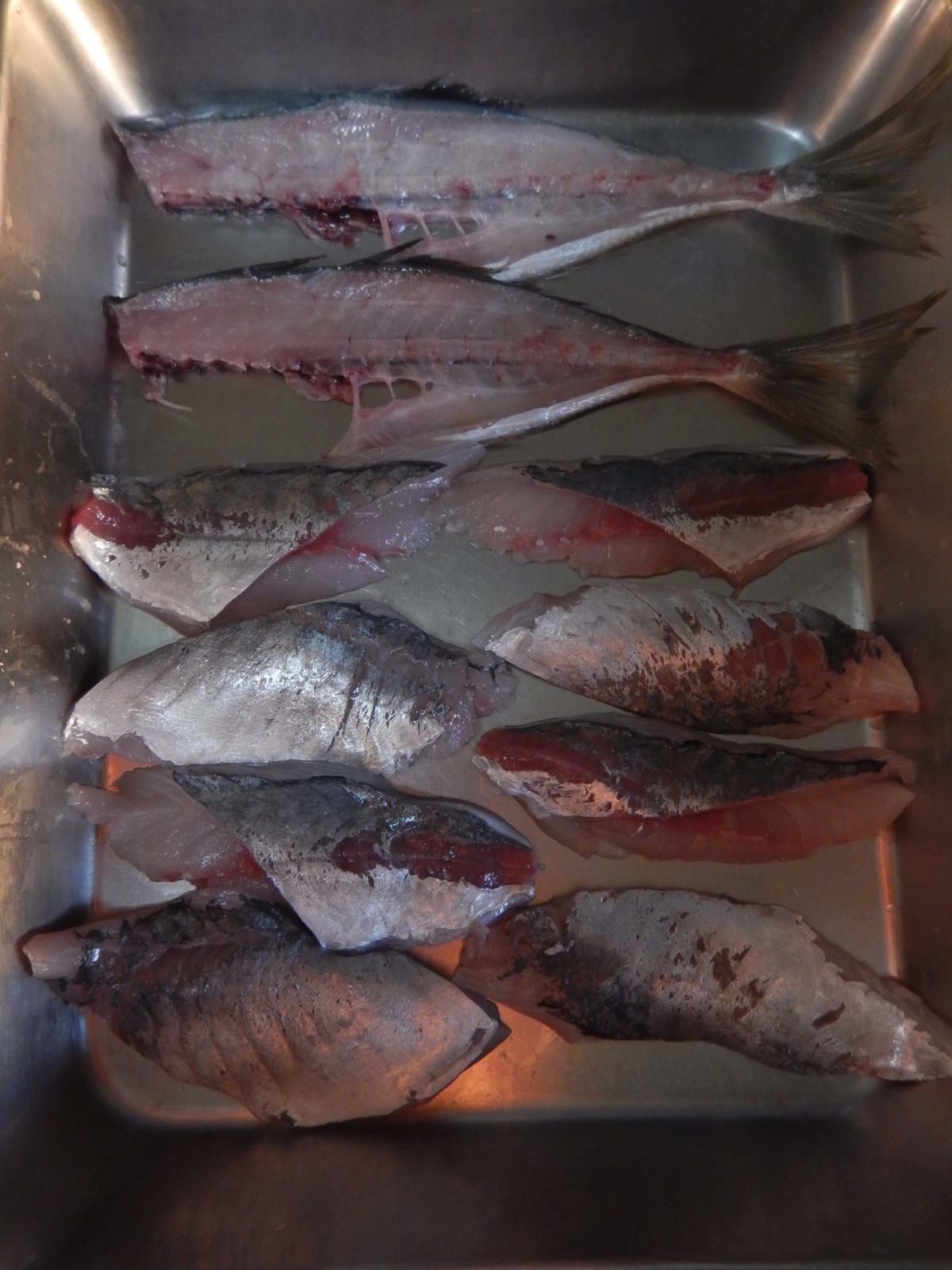 アジの3枚おろし練習の記録(2)焦ると、グロい仕上がりに。
